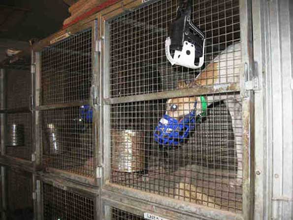 Es war so schlecht dort. Greyhounds wurden in vergitterten, warenhausähnlichen Zwingern Ihrem Siechtum überlassen. Viele trugen Maulkörbe; wie eine Art von doppelter Käfighaltung. Die armen Hunde hatten nur beschränkten Zugang zu Wasser und lebten von einer Diät aus rohem, verdorbenem Fleisch. Es gab kein Spielzeug und keine Unterhaltung. Was für ein schreckliches Leben!