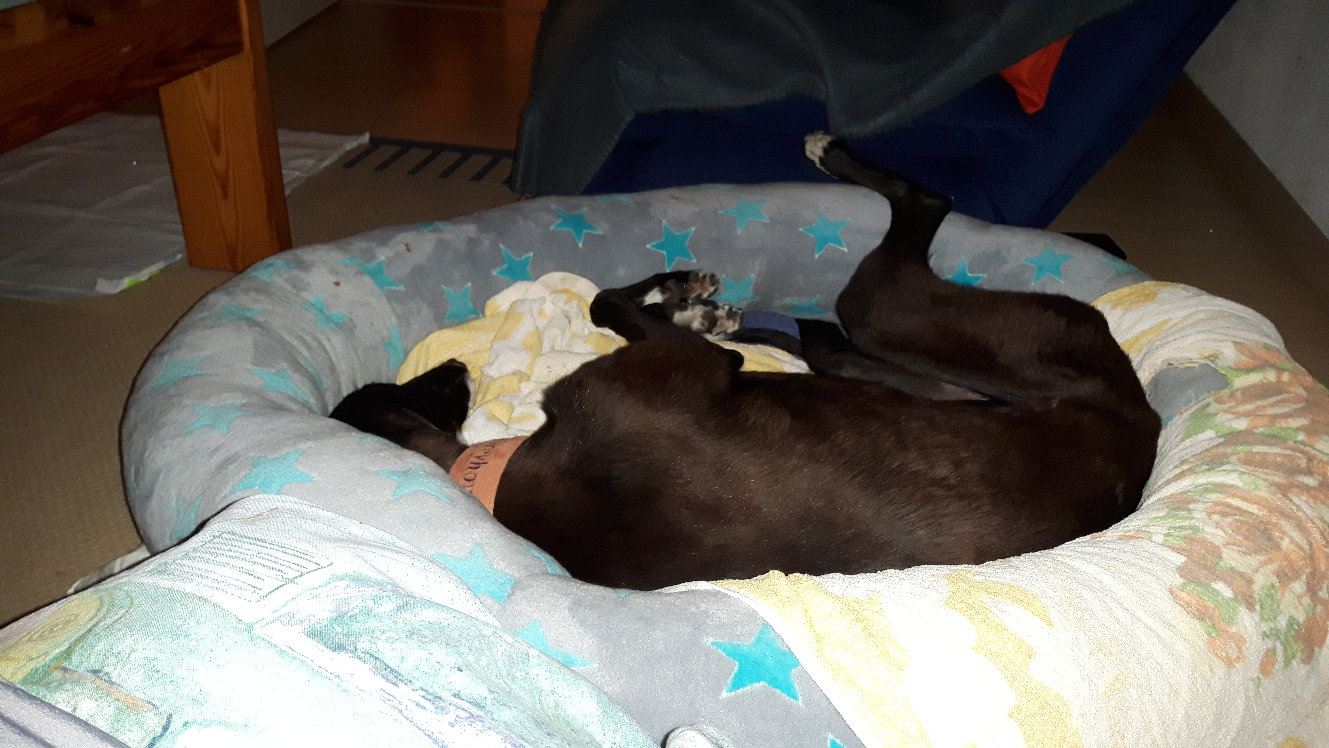 Ich bin sehr ängstlich, alles macht mir irgendwie Angst, ich kenne ja nichts. Die Menschen, die hier wohnen sind mir suspekt, der Mann hier ist mir lieber, der will nicht dauernd was von mir. Die Frau ist nervig, ich muss mit raus gehen, die fummelt an mir rum, Zecken raus machen, Ohren hat sie mir sauber gemacht, Zähne geputzt, sie sagt, das müsste sein.