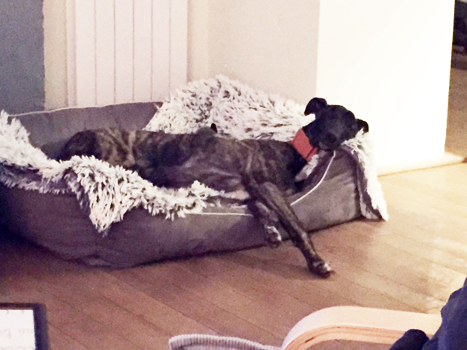 – unserem ersten Greyhound und unserem ersten Pflegehund.