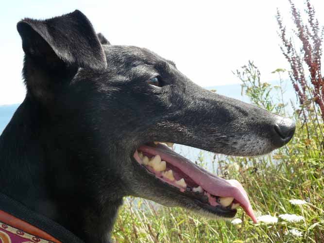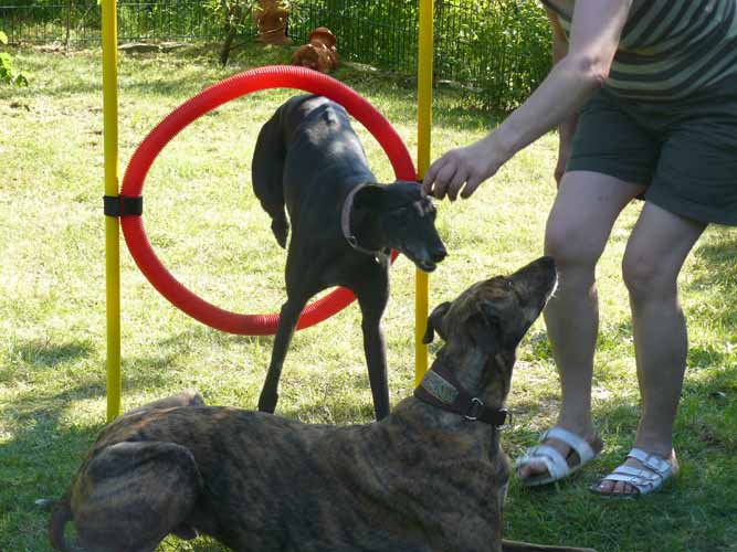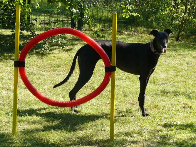 Victoria, die Flummi- Maus, ist für ihr Alter (16 Monate!!!) absolut klasse. Sie geht bereits super an der Leine, von kleinen Ausnahmen einmal abgesehen, wenn sie etwas besonders Tolles entdeckt hat und es unbedingt beschnüffeln muss. Aber dieses Verhalten ist ja normal für einen so jungen Hund, der in seinem vorherigen kurzen Leben gar nichts gelernt und gesehen hat, außer seinem Zwinger.