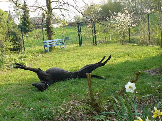 An Victorias Leinenführigkeit muss noch etwas gearbeitet werden. Sie ist jedoch nicht der erste Grey, dem die Pflegemama das entspannte Gehen an der Leine beibringen wird. Auch ihr Jagdtrieb ist nicht zu unterschätzen!!!