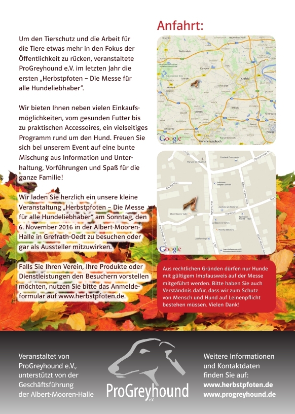 Wir freuen uns Sie am 06.11.2016 bei den „Herbstpfoten 2016“ begrüßen zu können,
