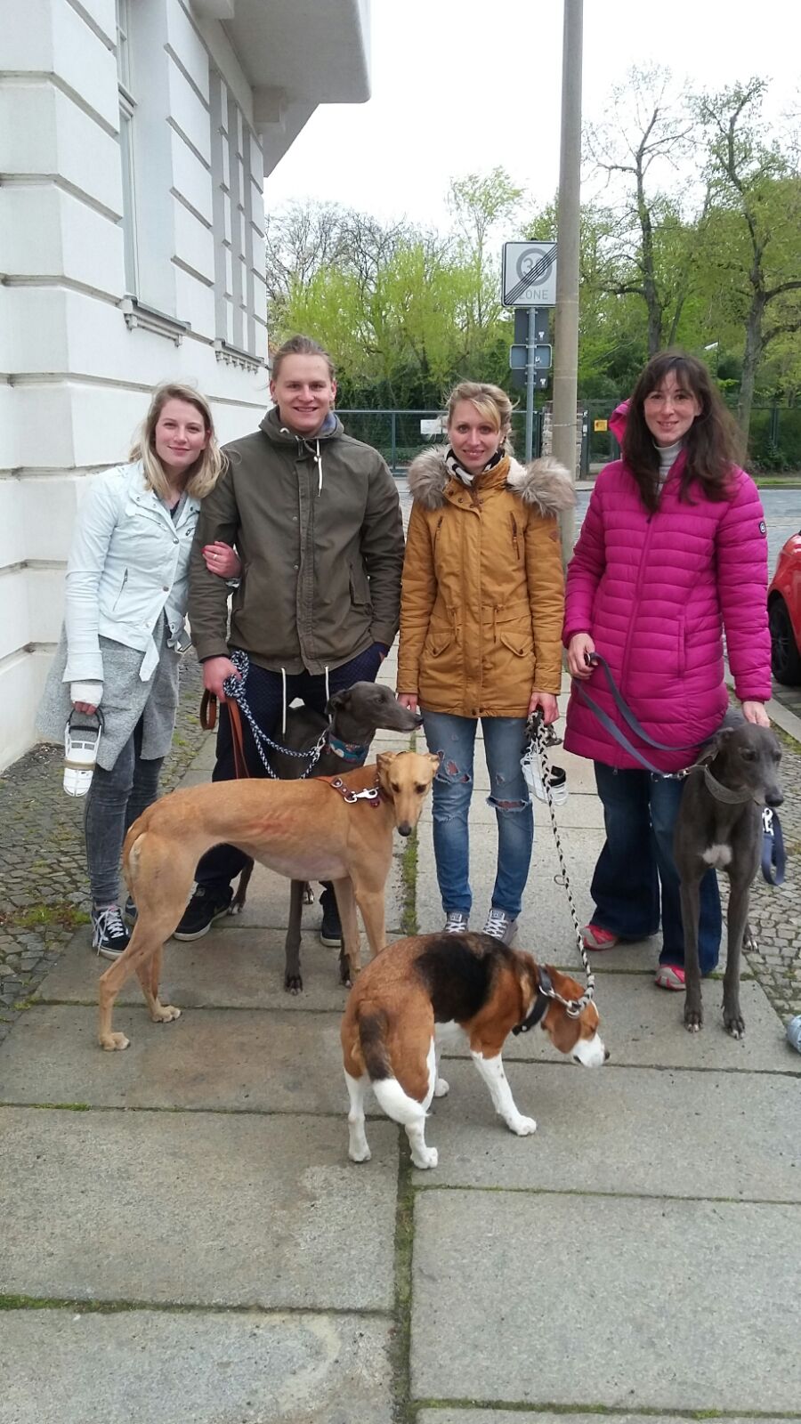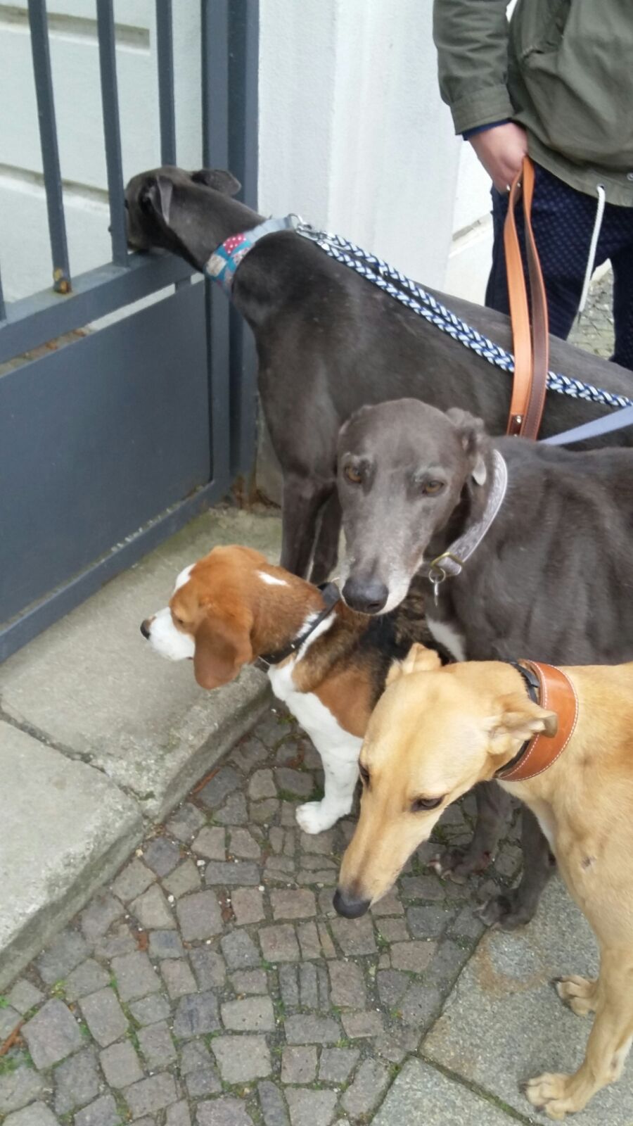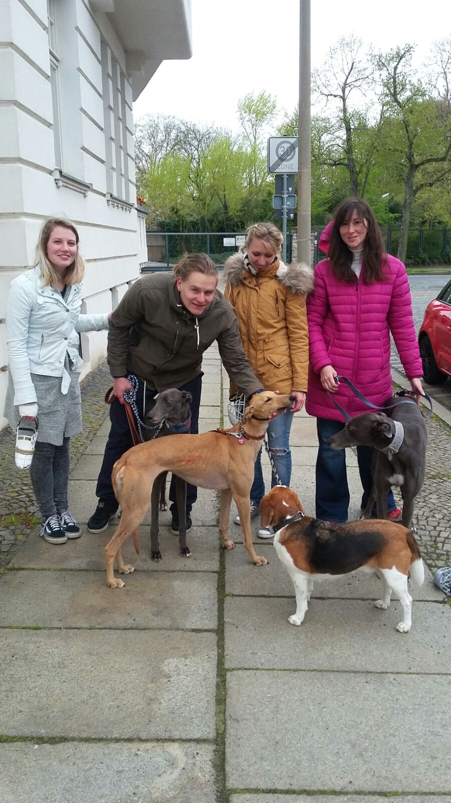 Das war für ProGreyhound ein günstiger Zufall, denn der Weg führte die vier geradewegs an Leipzig vorbei, wo unsere beiden ehemaligen Pflegehunde Loraine und Brae, einigen Lesern noch bekannt als Samson, jeweils ihr neues Zuhause gefunden haben.