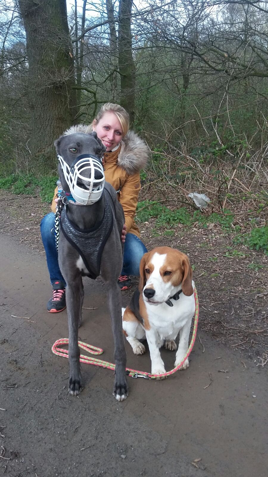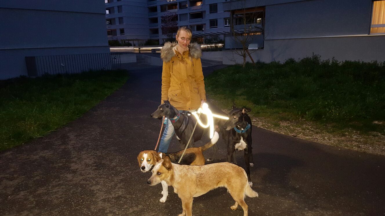 Ebenso stellen wir zwei unserer eigenen Greyhounds (mit