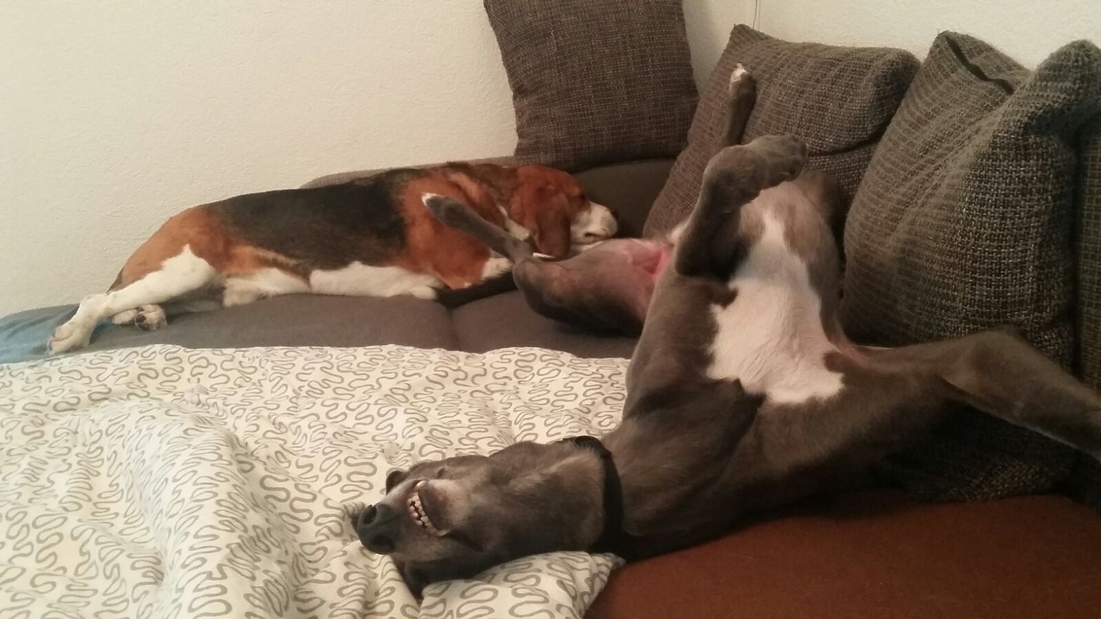 Im Haus ist er ein ganz normaler Greyhound, der seinen Couchplatz
