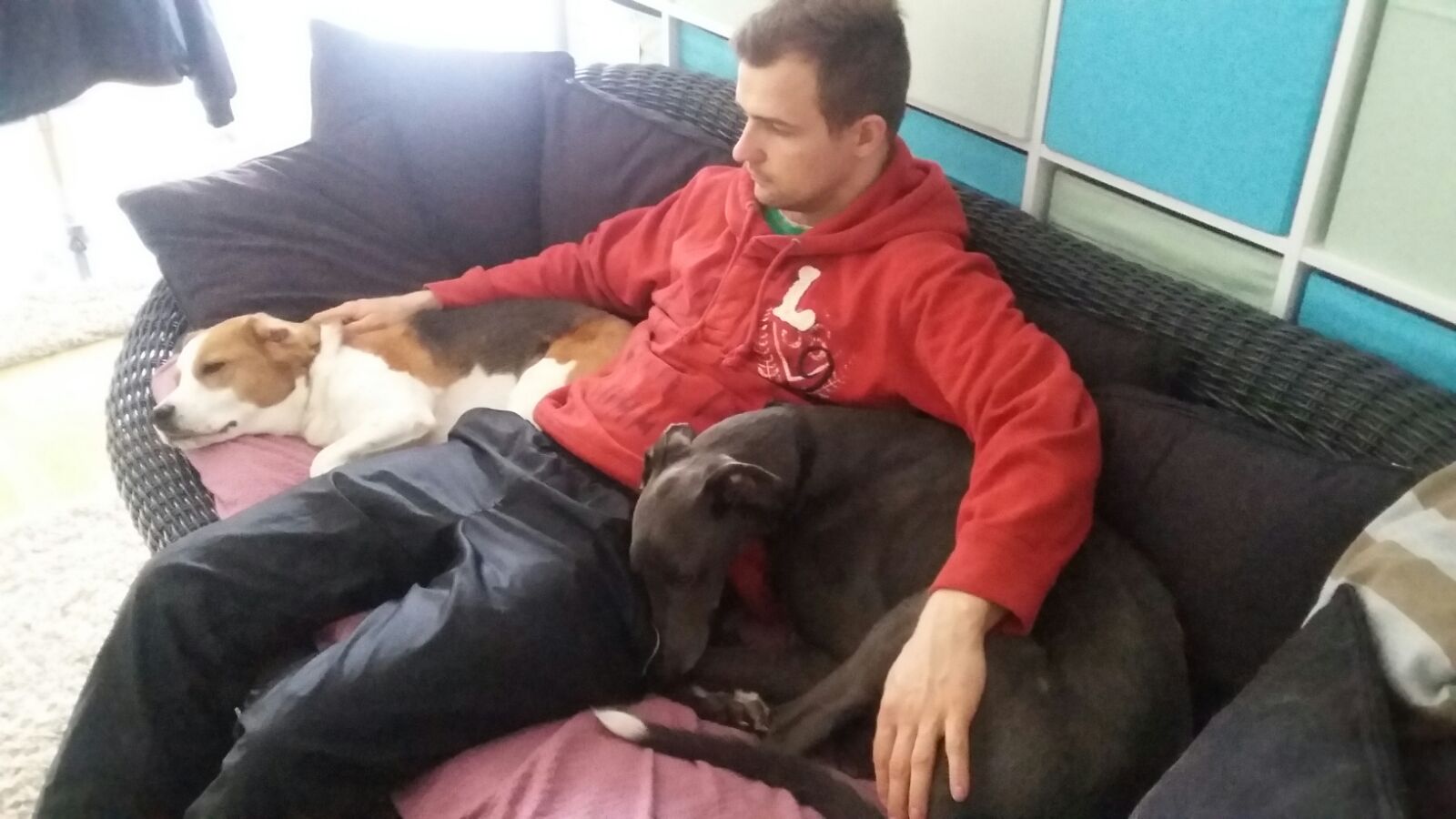 seinen Greyhoundfreunden. Kontaktliegen und kuscheln sind für ihn