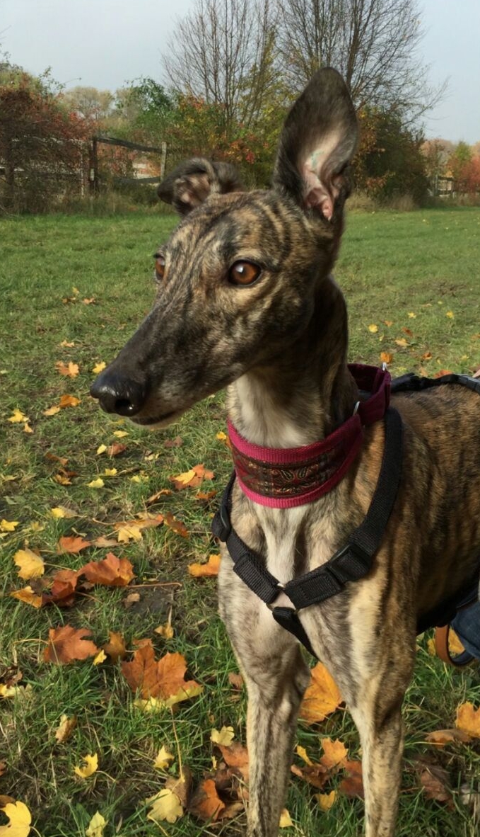 Erin ist ca. 2 – 3 Jahre alt und macht sich am 11.06.15 auf den Weg nach Nettetal. Wir wissen noch nicht viel über sie, aber sie soll wie alle Greyhounds, eine lustige und lebensfrohe Hündin sein. Sie ist Leinenführig und spielt gerne mit ihren Artgenossen oder ihrem Menschen.