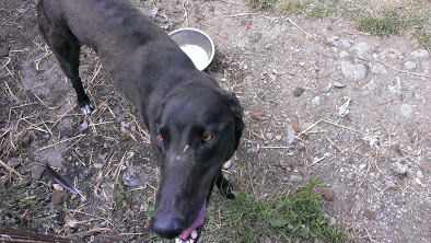 Als wir ankamen war die schwarze Greyhündin immer noch da. Zu unserem Entsetzen erfuhren wir, dass der kleine Verein leider doch keinen Platz für sie frei hatte und ihre Übernahme abgesagt worden war. Es war Freitagmorgen und die Zeit drängte! Wir riefen Eila an und fragten nach, ob sie noch ein Plätzchen frei hätte. Eila stimmt sofort zu und wir konnten die schwarze Maus also reservieren! Gott sei Dank!!!