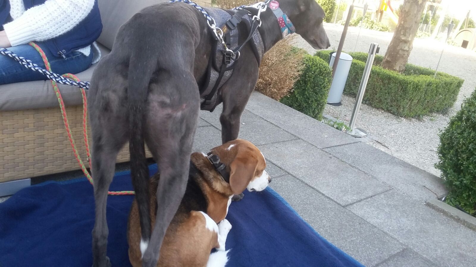 Mittlerweile können andere Hunde an uns vorbeigehen, ohne dass Jayden ein „großes Maul“ hat 😉 Er muss nur beruhigt werden und schon ist die Nervosität wie weggestreichelt.
