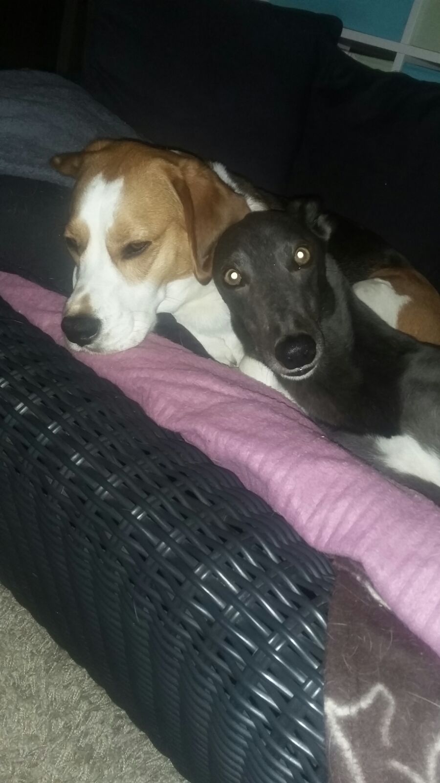 Wenn wir einmal nicht die Zeit zum Kuscheln haben, dann kuschelt er sich an Specki ran, ob Bacon will oder nicht
