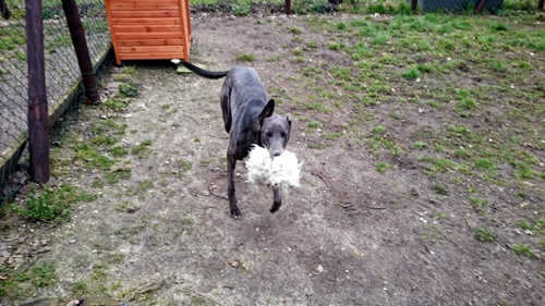 Er ist ein sehr angenehmer ruhiger Junge, der draußen im Garten auch mal aufdrehen kann, sein Spielzeug schüttelt und herumwirbelt.