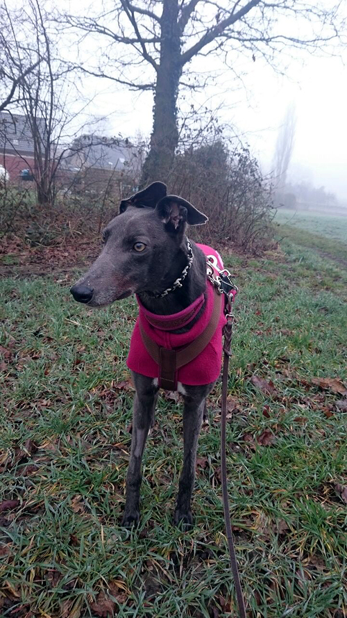 Von seiner Krankheit (Von Willebrand – Blutgerinnungsstörung Faktor 1) ist ihm nichts anzumerken. Man muss nur gut auf ihn aufpassen, damit er nicht stürzt oder gebissen wird. Auch sollte er beim Spaziergang nicht mit Anlauf in die Leine springt, wenn plötzlich Wild auftaucht. Dies könnte ein Hämatom mit sich bringen und die Krankheit wieder auslösen. Hier sind also verantwortungsvolle Greyliebhaber gesucht. Jayden hat ein besonderes Geschirr bekommen. So ist die Möglichkeit, dass er durch das Geschirr ein Hämatom bekommt sehr gering.
