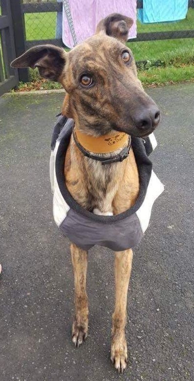 Wie jeder andere Hund braucht auch ein Greyhound seine täglichen Spaziergänge bei Wind und Wetter.