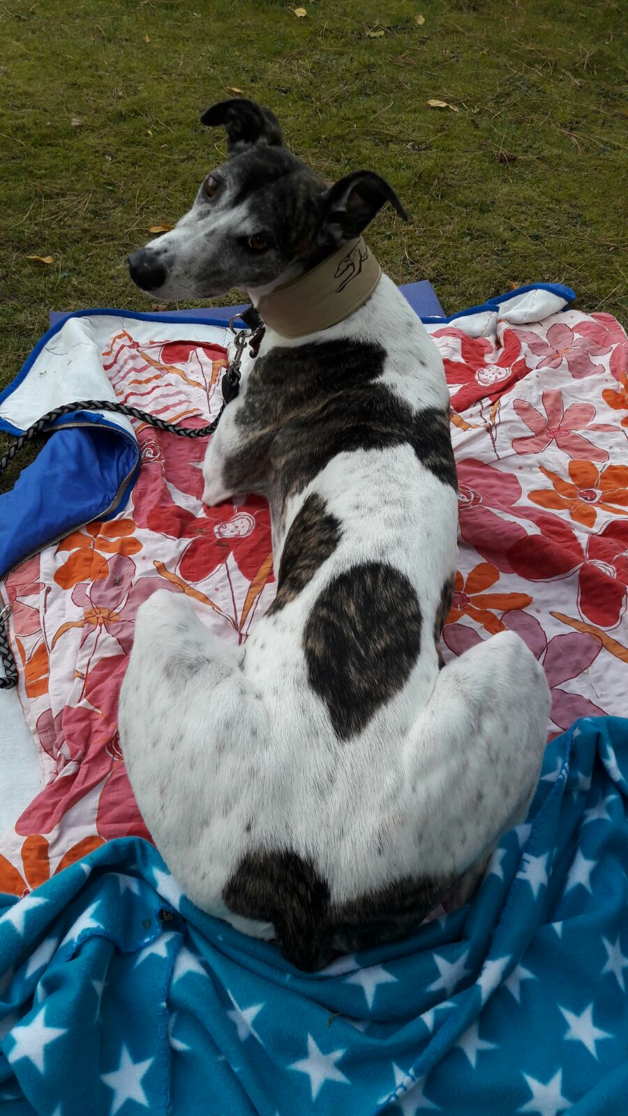 Auch wenn die Hunde in der Pflegestelle noch total verschlafen waren haben sie ihn lieb begrüßt, Silver hat sich dann ein Körbchen ausgesucht, sich eingekuschelt und geschlafen. Morgens hat er sich Haus und Hof genau betrachtet, für gut befunden und sich wieder eingekuschelt.
