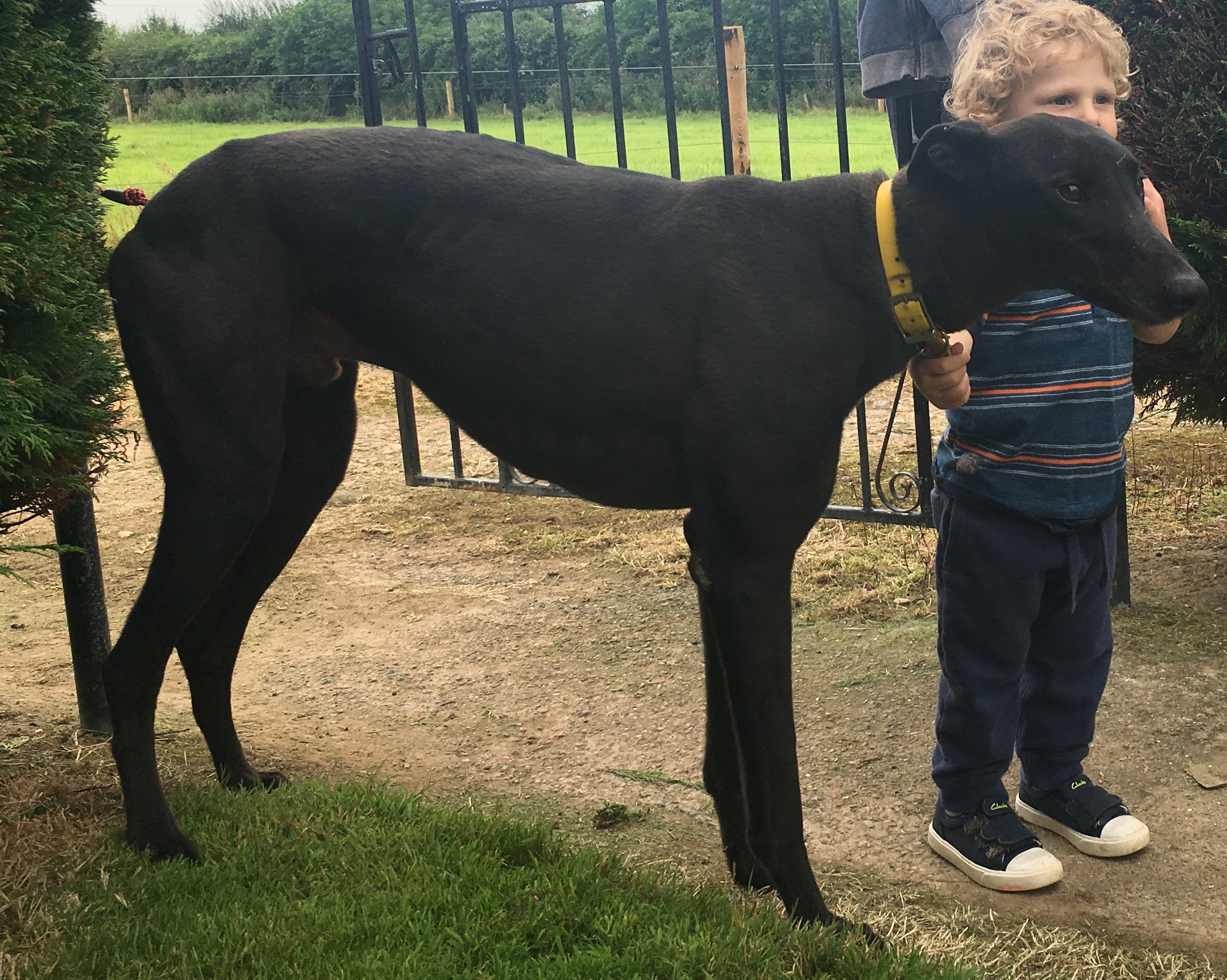 Jimmy wir uns als freundlicher und braver Greyhound der mit Kindern aufgewachsen ist beschrieben.